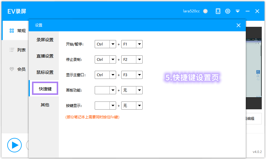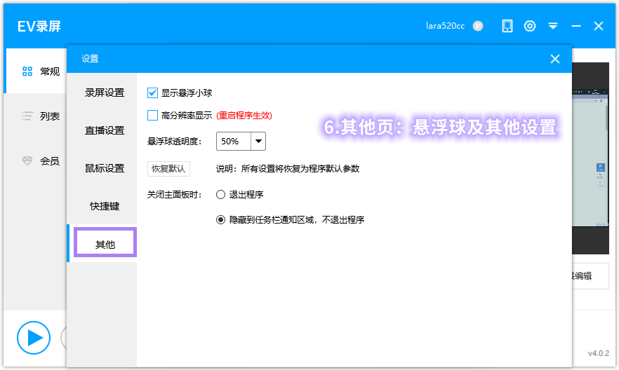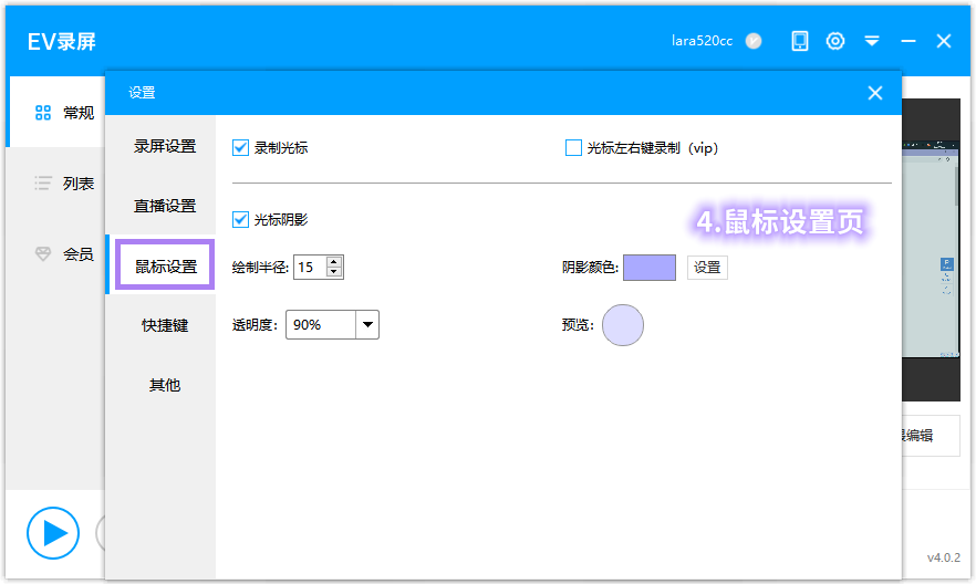 EV录屏 / PC版 / 使用教程 / 软件界面组成 / EV录屏设置界面专业术语详解 <<返回列表