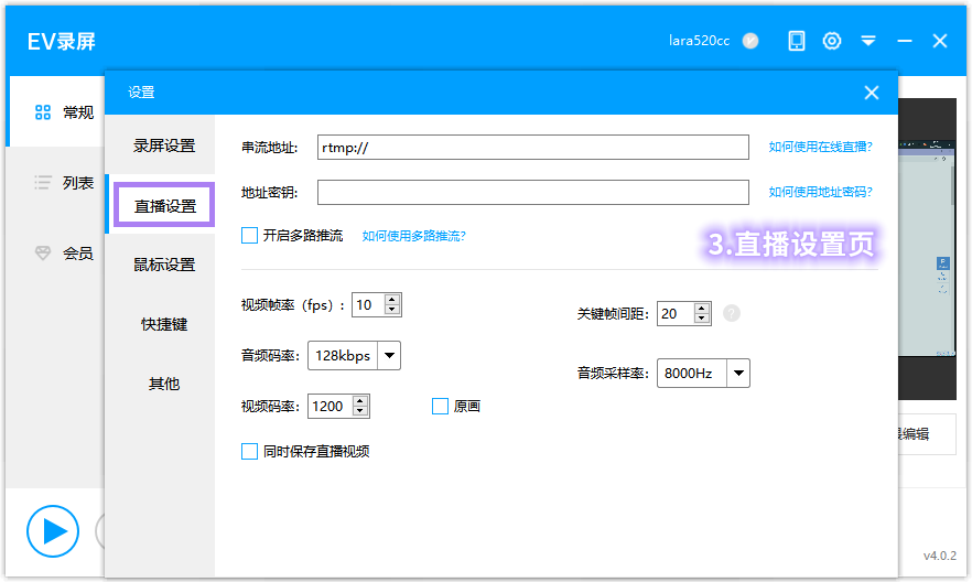 1.rtmp网络串流地址:请自行前往直播平台获取,如果在斗鱼TV直播就在斗鱼平台获取,具体http://www.ieway.cn/help/desc-evcapture-pc-108.html。每次直播完,都须要重新获取更新串流地址,每次推流地址都不一样。