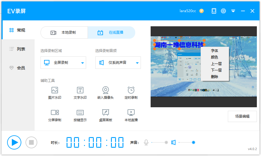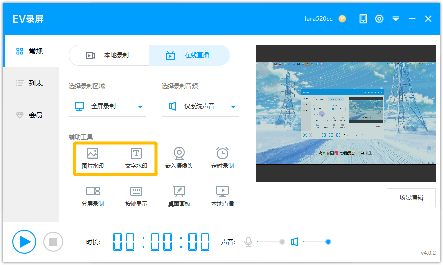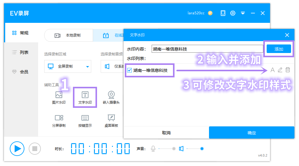 EV录屏 / PC版 / 常见问题 / 画面相关 / 录屏时如何添加图片或文字的水印,同步录制? <<返回列表