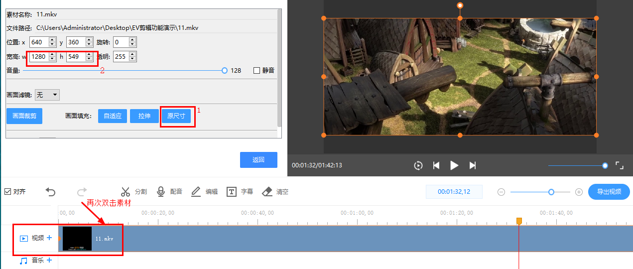 EV剪辑 / PC版 / 使用教程 / 入门教程 / 如何去掉视频上下黑边 <<返回列表