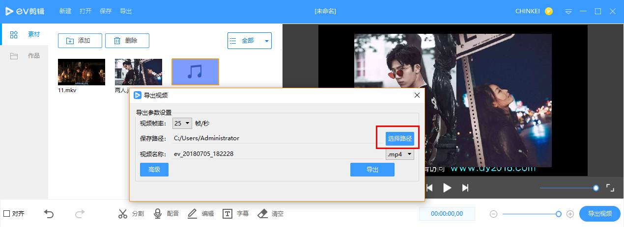 EV剪辑 / PC版 / 常见问题 / 设置问题 / 导出时如何选择保存位置 <<返回列表