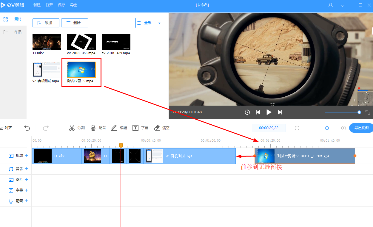 EV剪辑 / PC版 / 常见问题 / 操作相关 / 如何将多个视频合成在一起? <<返回列表