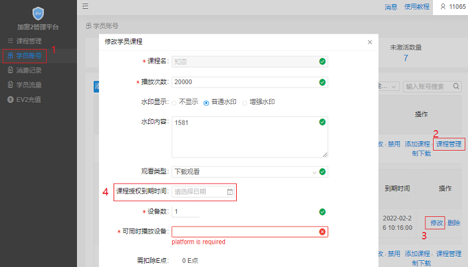 EV加密2 / PC版 / 常见问题 / 常见问题 / 同一个账号下,如何设置不同课程的观看期限 <<返回列表