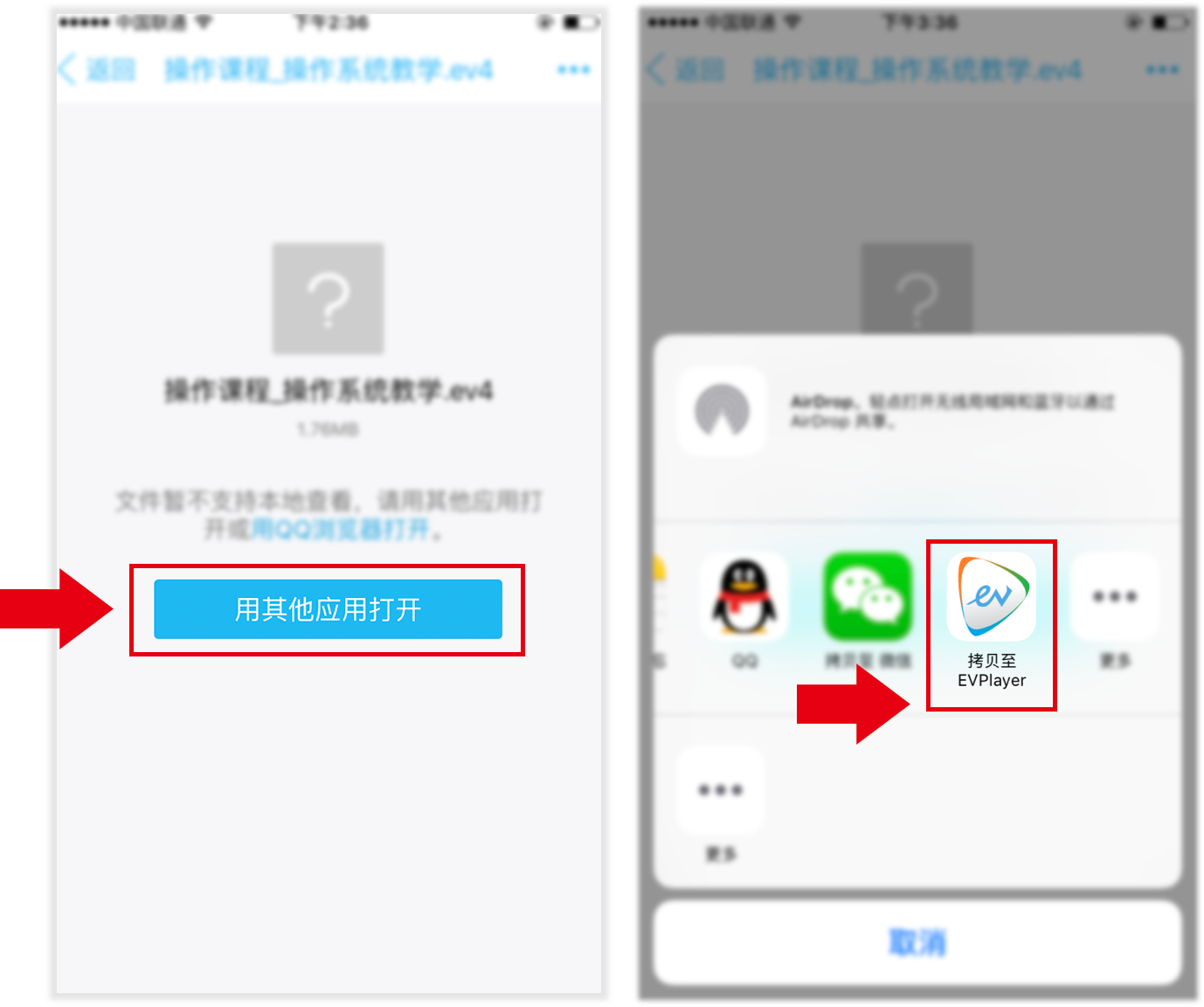2、点击视频,然后选择用EVPlayer打开这个视频。