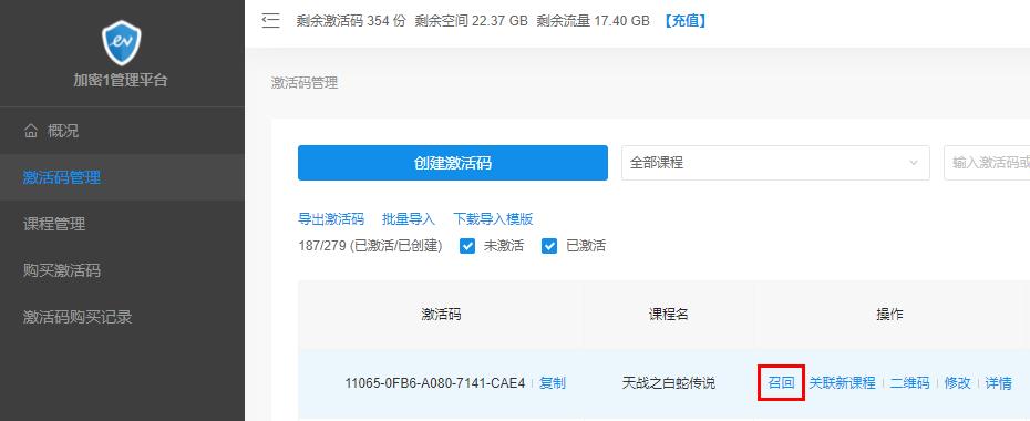 EV加密1 / PC版 / 常见问题 / 商户平台 / 激活码召回后还可以继续使用吗? <<返回列表