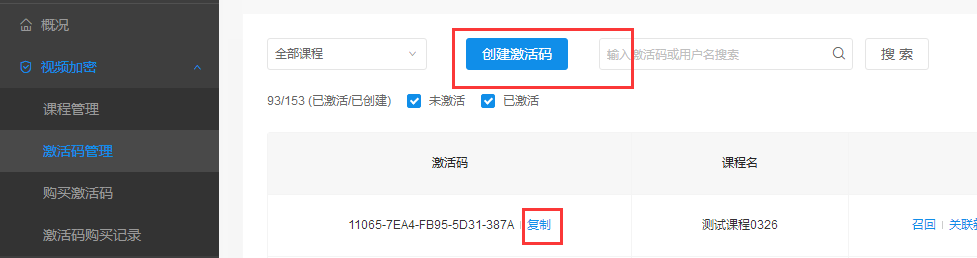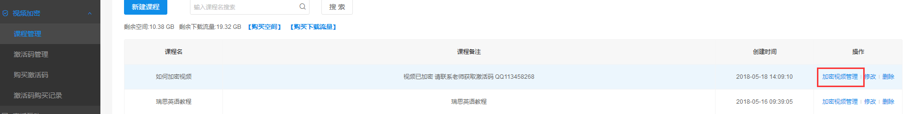 1、老师进入商户后台,点击课程管理,创建相关课程,将加密好的视频上传至商户后台。